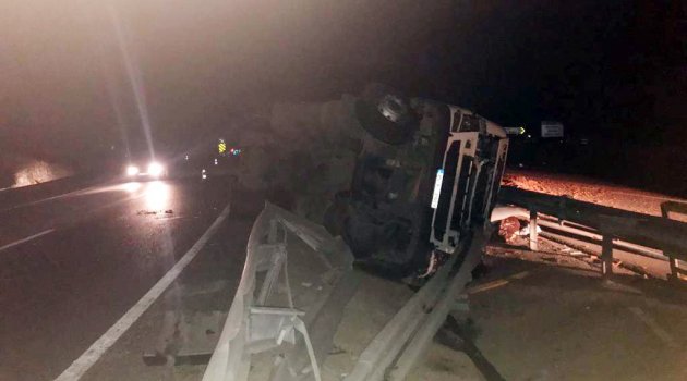 Alınan bilgilere göre, Ankara'dan yüklediği kiremitleri Bursa'ya götürmek için 35 F 3989 plakalı tırla yola çıkan Mustafa Kozak, Mezit -7 mevkiinde direksiyon hakimiyetini kaybetti. Kontrolden çıkan tır, yol ortasında bulunan bariyerlere çarpıp yan yattı. Devrilen tırda sıkışan sürücü itfaiye ekipleri gelene kadar çevredeki vatandaşlar tarafından kurtarıldı.