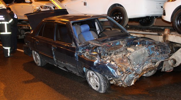 Kazada otomobil kullanılamaz hale gelirken, tırda da maddi hasar oluştu.