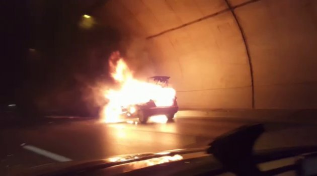 Tünelde yanan araç infilak etti