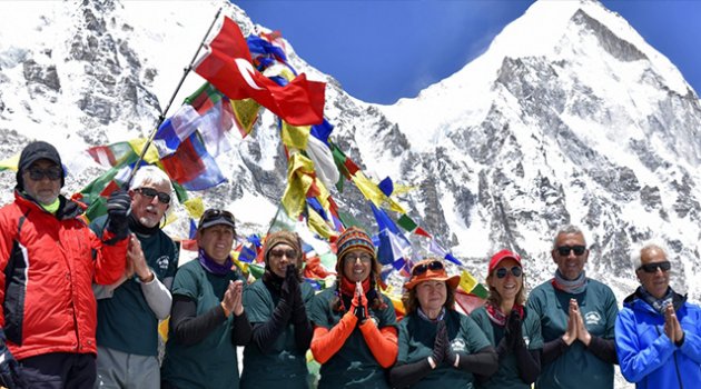 Everest Base Camp'a katılan yaşları 60'ın üstünde 11 Bursalı dağcı, 148 kilometre yürüyerek, 5 bin 364 metre yüksekliğe tırmandı.