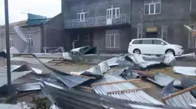 Türkmenistan'da etkili olan şiddetli fırtına hayatı felç ederken çok sayıda evin çatısı uçtu, ağaçlar devrildi.