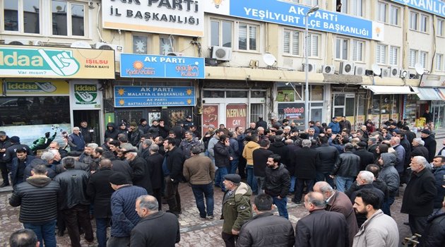 AK Parti Malatya il Başkanlığı önünde bir araya gelen tütün satan esnaf, iş yerlerinde tütün satışının yasaklanmasına tepki gösterdi.