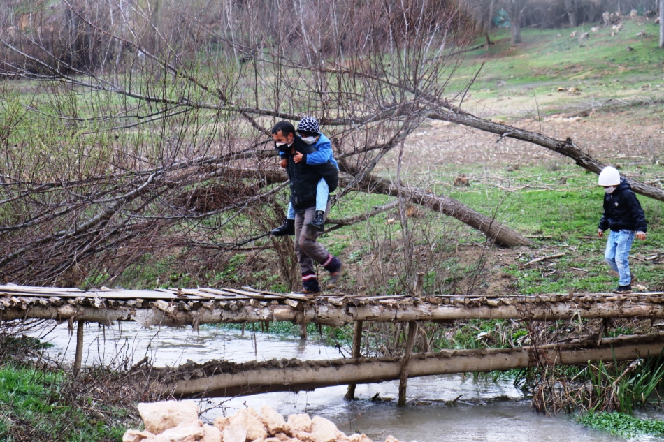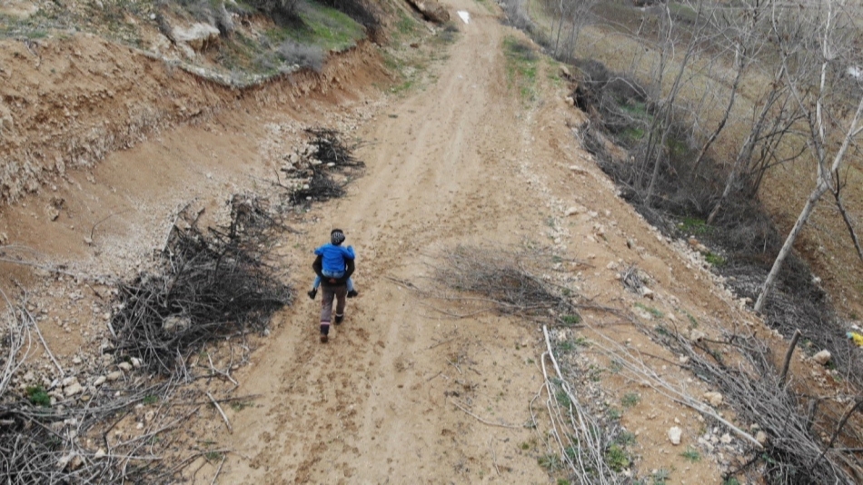 Evlerinin Küllü Mağara Mahallesindeki kırsal bir bölgede olması nedeniyle 3 yıldır oğlu Batuhan’ı sırtına alan baba Halil Şahin, yaklaşık 1 kilometre uzaklıkta bulunan okula götürüp getiriyor. Kar kış demeden çamur kaplı yolda ilkokul 2. sınıfa giden çocuğunu sırtında taşıyarak götüren fedakar baba yolların yapılmasını istiyor.