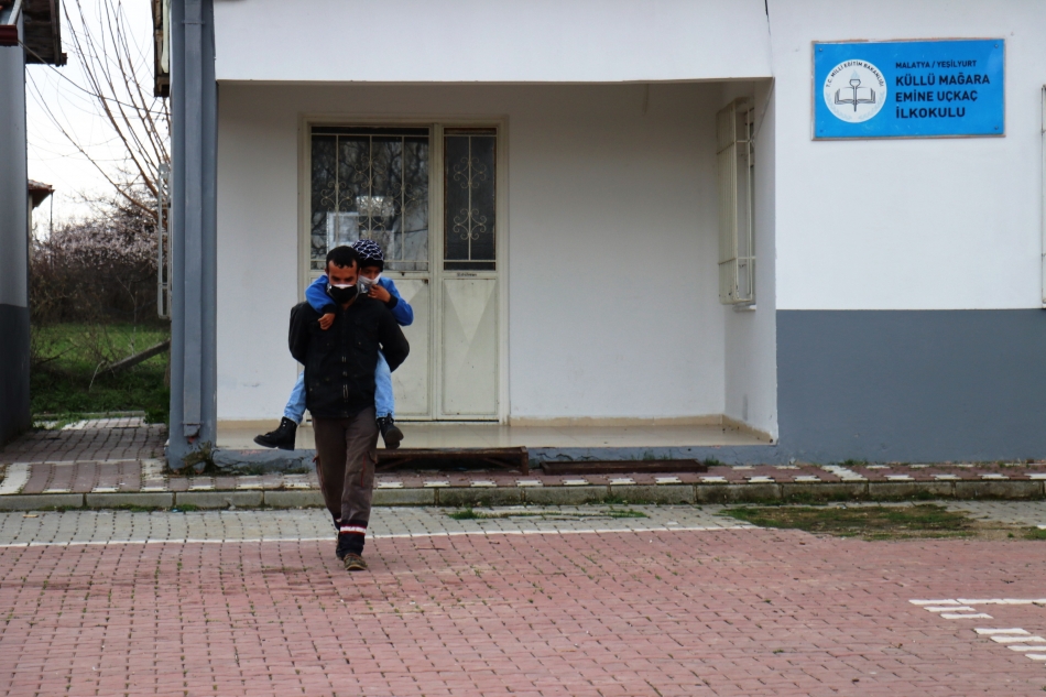 Malatya’da yaşayan Halil Şahin, bedensel engelli olan 10 yaşındaki oğlunu, 3 yıldır her gün yaklaşık 1 kilometre uzaklıktaki okula sırtında taşıyarak götürüp getiriyor.