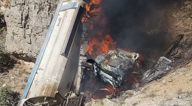 Malatya'nın Akçadağ ilçesinde sürücüsünün kontrolünden çıkan kamyon 50 metrelik uçuruma yuvarlandı. Kazada alev alan aracın sürücüsü yaralandı.