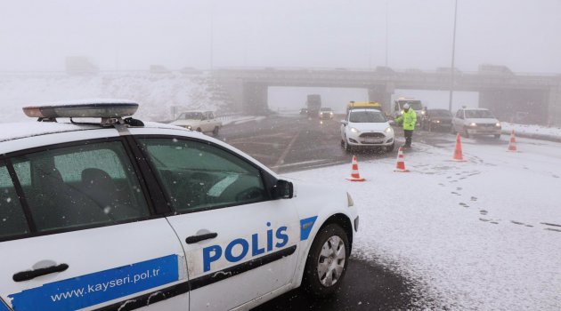 Kayseri'de sabah saatlerinde etkili olan kar yağışı ve tipi nedeniyle Malatya yolu trafiğe kapatıldı. Polis ekipleri, Mimarsinan Organize Sanayi Bölgesi mevkiinde yolu keserek, araçların geçişine izin vermedi.