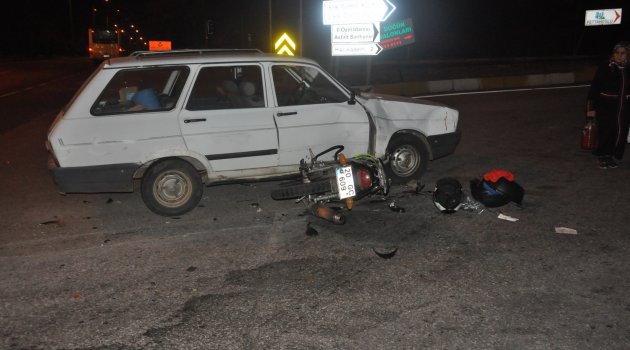 Uşak'ta motorla üniversiteye giden iki genç otomobile çarptı. Kazada iki üniversiteli genç ağır yaralandı.