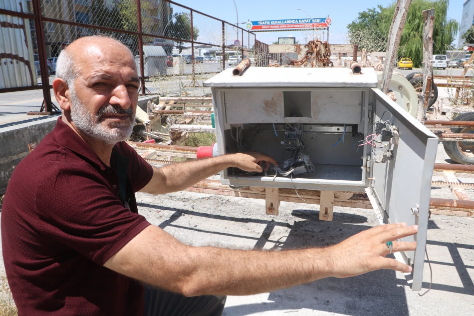 Hırsızlar tarafından 20 bin TL’lik zarara uğratıldığını ve hırsızın içerisinde önemli şeyler olduğunu söyleyerek telefonunu istediğini belirten Kalan, “Zararım, 20 bin lira civarında. Kablolarımızın tamamını çalmış. Panolarımızın içinde en ince küçük kablolara kadar tamamını çalmış. Emniyet ve savcılık serbest bıraktı. Arkasından da kendisi gelip telefonunu unuttu. İçerisinde önemli şeylerim var, benim telefonumu verin dedi. Tabi vermedik. Garipsedik biz bunu. Çok zorumuza gitti. Telefonu burada savcılığa başvurmasını, başvurduktan sonra da savcılığın bizden bu telefonu hırsızlık mahallinde unutulmuş telefondur diye gelip, talep etmesini bekliyoruz. Ama bir gün de olsa bu adama ceza verilmesini istiyoruz. Bana verdiği 20 bin liralık bu zararı ben nasıl tahsil edeceğim. Ben şimdi onu kara kara düşünüyorum” şeklinde konuştu.