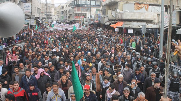 Binlerce Ürdünlü başkent Amman'da Kudüs ve Gazze için dayanışma yürüyüşü gerçekleştirdi.