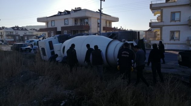Nevşehir’in Ürgüp ilçesinde beton mikseri yan yattı.