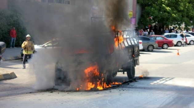 Kamyonetin alevler içindeki görüntüsü ise vatandaşlar tarafından cep telefonu ile kaydedildi.