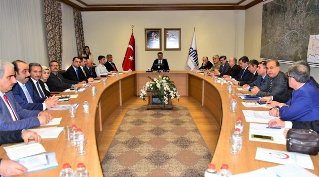 Valilik Toplantı Salonu'nda düzenlenen toplantıya, Vali Aydın Baruş, Cumhuriyet Başsavcısı Muhammet Savran, Vali Yardımcısı Ömer Sağlam ve ilgili kurum müdürleri katıldı.