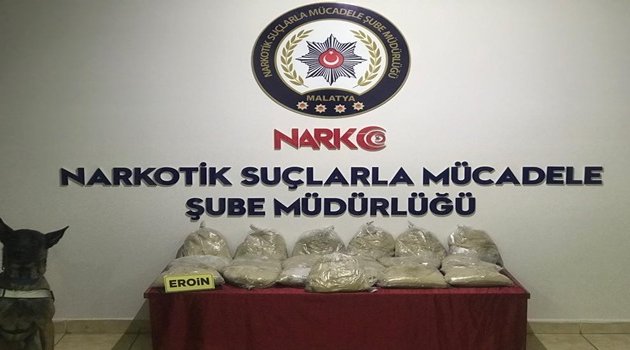 Malatya Emniyet Müdürlüğü Narkotik Suçlarla Mücadele Şube Müdürlüğü görevlileri, uyuşturucu ve uyarıcı madde ticareti yapan şahıslara yönelik çalışmalar kapsamında, E.P. isimli şahsın araçla doğu illerinden temin ettiği uyuşturucu eroin maddesini il güzergahını kullanarak batı illerine sevk edeceğini tespit etti. Takibe alınan araç Darende’de oluşturulan uygulama noktasında durduruldu. Araçta narkotik dedektör köpeği Einstein vasıtasıyla yapılan aramada, kolilerde bulunan deterjan bidonları içerisine zulalanmış vaziyette 39 kilo 464 gram eroin maddesi ele geçirildi.