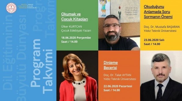 Malatya Milli Eğitim Müdürlüğü tarafından 23 Haziran tarihine kadar online olarak gerçekleştirilecek olan 'Dil Becerileri Çalıştayı'na Prof. Dr. İlhan Erdem, Prof. Dr. Erol Duran, Çocuk Edebiyatı Yazarı Birsen Ekim Özen, Prof. Dr. Hayati Akyol, Prof. Dr. Mehmet Temizkan, Doc. Dr. Seyit Ateş, Dr. Öğr. Üyesi Melike Günyüz, Çocuk Edebiyatı Yazarı Ülker Kurtcan, Doç. Dr. Talat Aytan, Doç. Dr. Mustafa Başaran katılıyor.