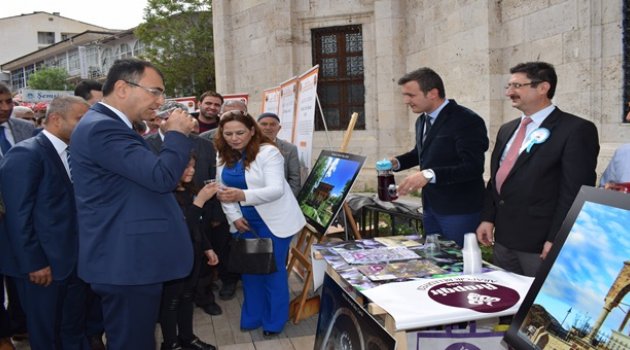 Sergide Arapgir Belediyesi tarafından açılan stantta katılımcılara 'Reyhan Şerbeti' ikramı yapıldı.Vali Toprak'ta Arapgir Belediyesi tarafından açılan stantta ziyaret ederek Reyhan şerbeti içti.