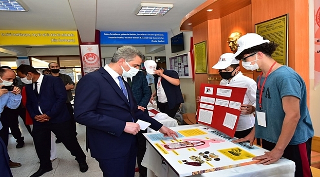 Vali Aydın Baruş, Mahmud Celaleddin Ökten Anadolu İmam Hatip Lisesinde düzenlenen TUBİTAK Bilim Fuarına katıldı.