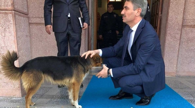 Malatya Valisi Aydın Baruş, kentin maskotu olan sokak köpeğine elleri ile su içirdi.