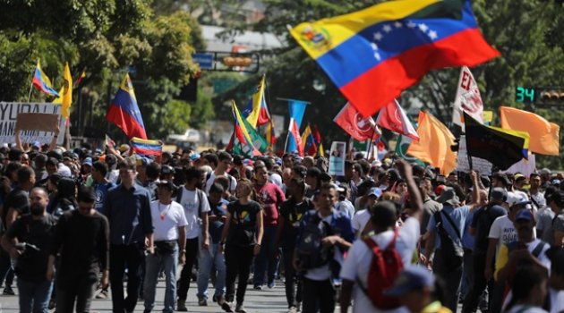 Venezuela’daki siyasi kriz ülkeyi ikiye böldü. Nicolas Maduro hükümeti ile kendini geçici devlet başkanı ilan eden Ulusal Meclis Başkanı Juan Guaido yandaşları bugün başkent Karakas’ın farklı noktalarında meydanlara indi. Dış baskılara tepki göstermek üzere başkentteki Morelos Meydanı'nda toplanan Maduro destekçileri, Devlet Başkanlığı Sarayı Miraflores'e yürüyecek.