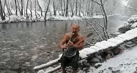 Malatya'da yaşayan 57 yaşındaki cümbüş ve klarnet ustası, eksi 6 derecede kar altında şort giyip klarnet çalarak 'Kar yağar kar üstüne' türküsünü söyledi. Arapgir ilçesi Kayaarası Kanyonu’nda yıllardır bir kamelyada yaşayan ve yılın büyük bir bölümünü burada geçiren Cümbüş ve Klarnet Ustası Ümit Aydın, eksi 6 derecede kar altında şort giyip klarnet çalarak 'Kar yağar kar üstüne' türküsünü söyledi. Cümbüşü ve klarneti ile Kayaarası Kanyonu’nda kar altında mini bir konser veren Aydın’ı çevredeki vatandaşlar ise şaşkınlıkla izledi.