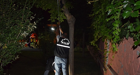 HASAN ERYILMAZ/ Malatya'da kendinden bir süredir haber alınamayan genç polis ekipleri tarafından parkta bir ağaca eşofmanla asılı halde bulundu. Hayatını kaybetmek üzere olan genci polis ekipleri eşofmanı keserek kurtardı. Olay, Yeşilyurt ilçesine bağlı Şeyh Bayram Mahallesi'nde meydana geldi. Edinilen bilgilere göre 27 yaşındaki M.M.'den bir süredir haber alamayan ailesi gencin hayatında endişe duyduklarını belirterek polis ekiplerinden yardım istedi. Bunun üzerine M.M.'nin bulunması için polis ekipleri çalışma başlatırken, 02.15 sularında Hacı Bektaş Veli Caddesi üzerinde devriye atan ekipler bölgede bulunan bir parkta ağaca asılı halde bir kişiyi gördü. Hızla olay yerine intikal eden ekipler ağaca eşofmanla asılı haldeki şahsı eşofmanı keserek aşağı indirdi. Yapılan incelemelerde şahsın bir süredir kendinden haber alınamayan 27 yaşındaki M.M. olduğu belirlenirken, nefes almakta zorlanan genç ilk müdahalesinin ardından Malatya Eğitim ve Araştırma Hastanesi'ne kaldırıldı. Olay yerinde inceleme yapan ekipler M.M.'nin kaleme aldığı değerlendirilen mektup bir adet tütün tabakası ile bir cep telefonu buldu. Hastanede tedavisi süren gencin hayatı tehlikesinin bulunmadığı öğrenilirken, olayla ilgili inceleme başlatıldı.