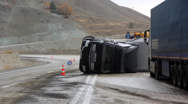 Erzincan’da viraja kontrolsüz giren bakır yüklü tır, rüzgârında etkisiyle devrildi.