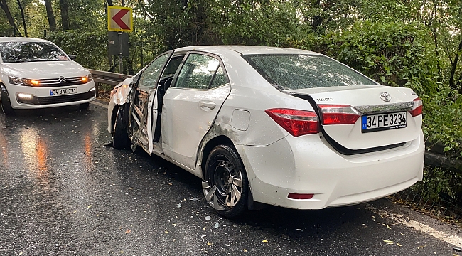 İstanbul Sarıyer'de yağış sonrası kayganlaşan yolda virajı alamayan İETT otobüsü, iki araca çarptı. Kaza sonucu 2 kişi yaralanırken, yolcular yaya olarak yoluna devam etti.