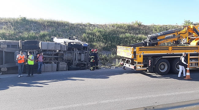 Kocaeli’nin Dilovası ilçesi Kuzey Marmara Otoyolu bağlantı yolunda virajı alamayarak devrilen tırın kupasının altında kalan sürücü öldü.