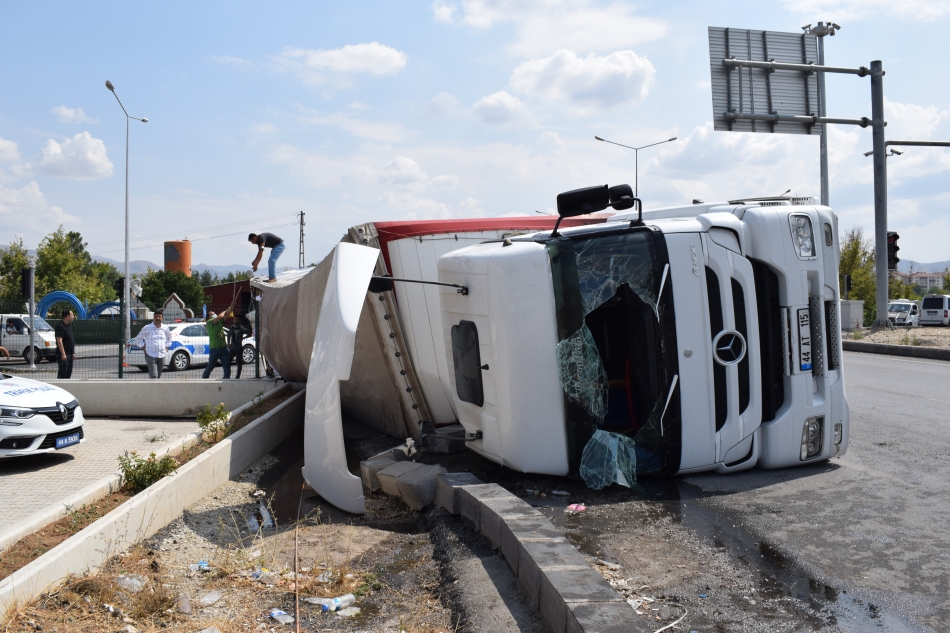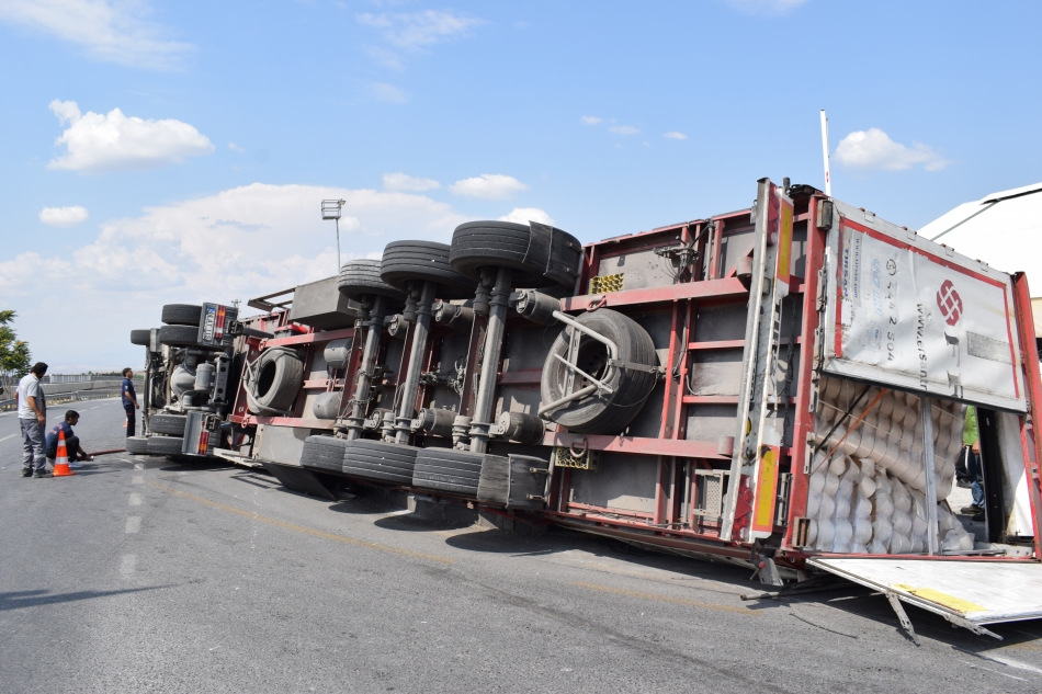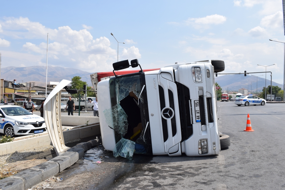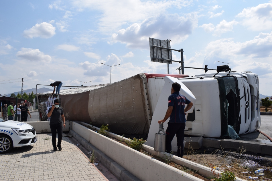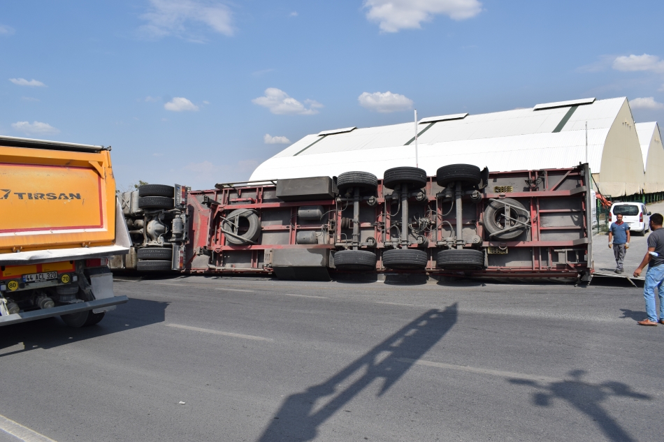 Kaza, Malatya-Sivas Karayolu birinci kilometresinde meydana geldi. Edinilen bilgilere göre, S.B. idaresindeki iplik yüklü Mercedes marka 44 AT 115 plakalı tır Anayurt Bulvarı kavşağında sürücünün direksiyon hakimiyetini kaybetmesi sonucu virajı alamayarak devrildi.