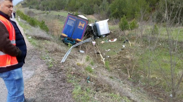 Sinop'un Boyabat ilçesinde yabancı plakalı tır şarampole devrildi. Kazada tırın Gürcistan asıllı sürücüsü hayatını kaybetti.