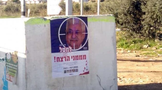 Yahu yerleşimciler, Ramallah yakındaki Orfa'daki Yitzhar yerleşim bölgesi yakınındaki kontrol noktasına, Batı Şeria’da Yahudi yerleşimcilere karşı yapılan operasyonları finanse etmekle suçladıkları Filistin Lideri Mahmud Abbas’a suikast yapılmasını isteyen posterler astı.