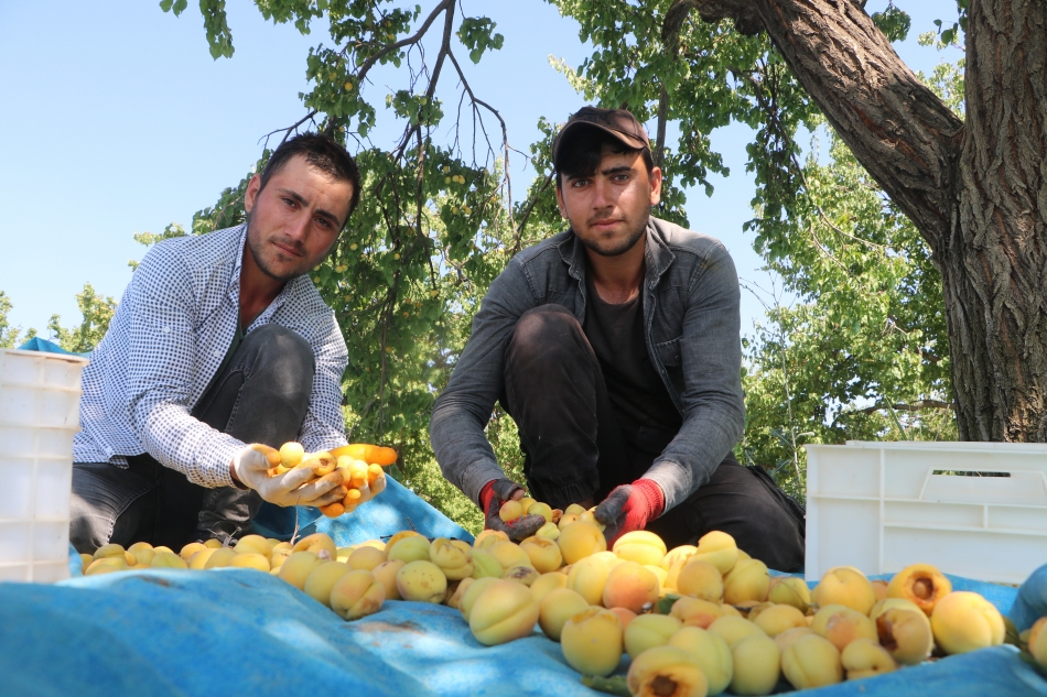 Dünyanın kayısı başkenti olarak nitelendirilen Malatya’da kayısı hasadı başladı. Üretimi ile kent ekonomisine önemli kazanım sağlayan Malatya kayısısı, her yıl onlarca mevsimlik işçilerinin gelir kapısı oluyor. Dünyadaki kuru kayısı üretiminin yüzde 85’inin yapıldığı Malatya’ya çevre illerden gelen mevsimlik işçiler zorlu koşullarla çalışıyor. Kayısı hasadında çalışan mevsimlik tarım işçileri, kavurucu sıcakta gün boyu ekmek parası için mücadele ediyorlar.