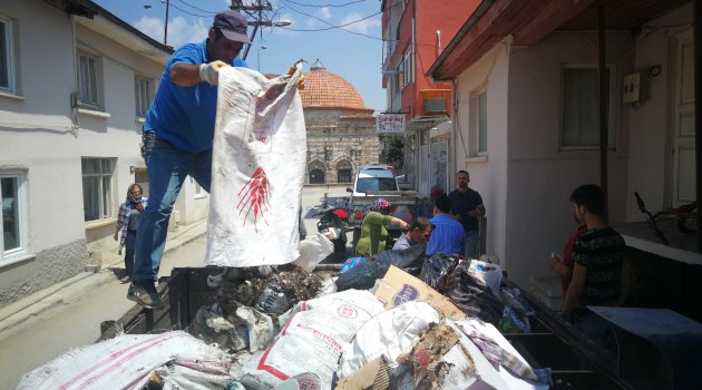 Bursa'nın İznik ilçesinde yalnız yaşayan kadının evinden 8 römork çöp çıktı.
