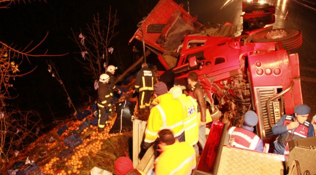 Edinilen bilgiye göre, Bursa istikametinden İstanbul istikametine giden Murat. A. (45) idaresindeki 09 AAR 365 plakalı portakal yüklü kamyon yağış nedeniyle kayganlaşan yolda kontrolden çıktı. Hızla çelik bariyerlere çarpan kamyon takla attı. Kamyon kazanın gerçekleştiği noktadaki yaklaşık 50 metrelik uçuruma savrulmaktan son anda kurtuldu. Hurdaya dönen aracın şoförü Murat A. feci şekilde can verdi. Araçta sıkışan şahsın cesedi ise Yalova İtfaiyesi ekipleri tarafından yaklaşık yarım saat süren bir çalışma neticesinde çıkartılabildi. Aracın kasasındaki tonlarca portakal ise etrafa saçıldı. Kaza nedeniyle tek şeride düşen yol aracın kaldırılması sonrasında normale döndü.