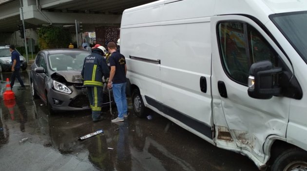Edinilen bilgiye göre, Şehit Ömer Faydalı Caddesi yönünden Tonami Meydanı yönüne giden R.S. (38) idaresindeki 16 ADE 033 plakalı otomobil iddiaya göre kırmızı ışıkta geçti. Hızla giden araç duramayarak o esnada Bursa yönüne hareket eden araçlardan F.P. (41) idaresindeki 77 BE 055 plakalı panelvan minibüse yan taraftan vurdu. Aynı yönde hareket eden M.Ç. (35) idaresindeki 77 BR 404 plakalı bir otomobil de panelvan minibüse arkadan çarptı. Çarpmanın etkisiyle kırmızı ışıkta geçen otomobil sürücüsü R.S. ile panelvan minibüsün sürücüsü F.P. yaralandı. Olay yerine çağrılan ambulansla hastaneye kaldırılan yaralıların hayati tehlikesinin olmadığı öğrenildi.
