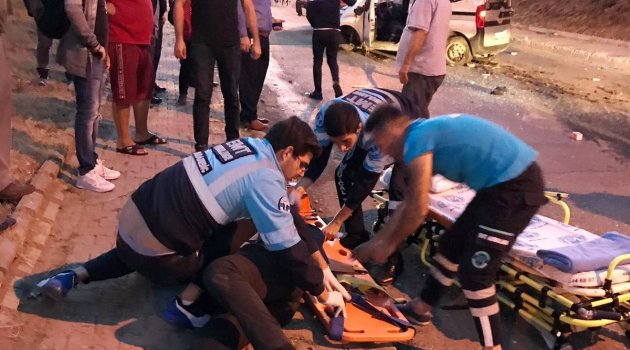 Yan yola uçan aracın çarptığı yaya ağır yaralandı