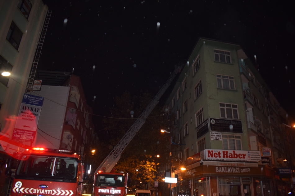 Edinilen bilgilere göre, Aslantepe Caddesi üzerinde bulunan 5 katlı bir apartmanın çatı kısmında henüz bilinmeyen bir nedenle yangın çıktı. Yangını fark eden vatandaşların durumu itfaiye ekiplerine bildirmesi üzerine bölgeye polis, sağlık ve itfaiye ekipleri sevk edildi. Kısa sürede olay yerine gelen itfaiye ekipleri, yangına müdahale ederken, polis ekipleri de apartmanda bulunan dairelerin kapılarını tek tek çalarak bina sakinlerinin tahliyesini sağladı.