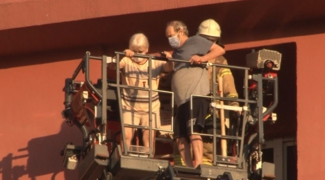 Yangında mahsur kalanlar itfaiyenin merdiven aracıyla kurtarıldı