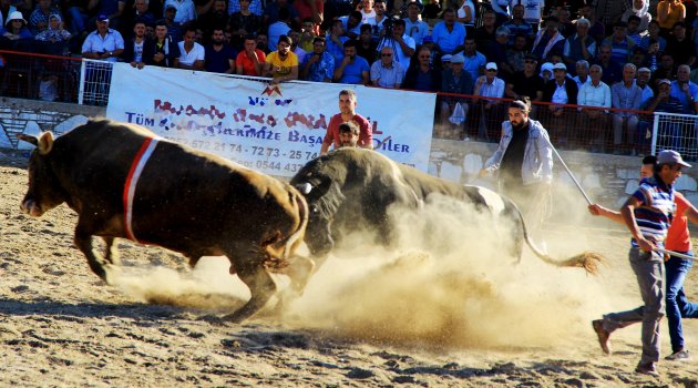 Muğla ve Aydın’ın kültürünün bir parçası olan boğa güreşlerine 35 derece sıcağa rağmen binlerce vatandaş izliyor. Boğalar arenada adeta tozu dumana katarken, zaman zaman kazalar da meydana geliyor.