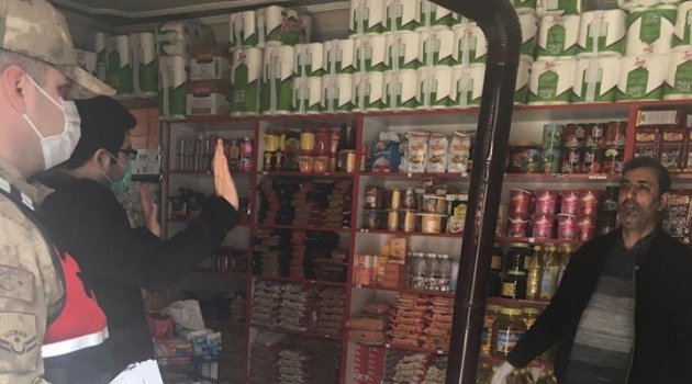 Gıda maddelerinin satıldığı esnafları ziyaret edip, hijyen kurullarını denetleyen jandarma, kurallara uymayanlara ceza kesiyor. Vatandaşlara ise korona virüs önlemi için sosyal mesafenin önemi ile ilgili bilgi veriliyor.