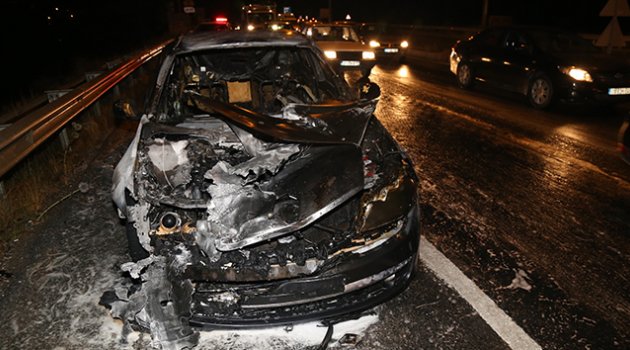 Olay, İskenderun ilçesi Belen yolunda meydana geldi. İskenderun'da bir oto galeriden aldıkları yaklaşık 70 bin lira değerindeki 31 KF 350 plakalı otomobille yemeğe giden Mahmut Üzel, ailesi ve arkadaşı Nuri Kayış üniversite kampüs bölgesine geldiklerinde duman kokusu alınca panikle araçtan indi. Otomobil, motorunda çıkan yangının kısa sürede büyümesi ile adeta alev topuna dönüştü. Haber verilmesi üzerine Belen Belediyesi itfaiye ekipleri olay yerine gelerek yangını söndürdü. İskenderun-Antakya yolu trafiğe kapanırken, yolda kilometrelerce kuyruk oluştu. Polis otomobilin tamamen söndürülmesinin ardından yolu trafiğe açtı.