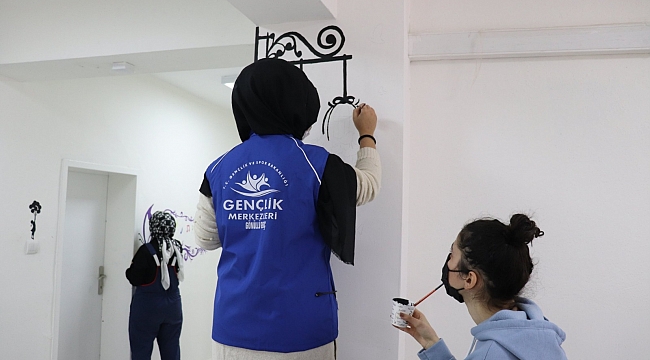 Malatya’da, Hanımınçiftliği Gençlik Merkezi’nin duvarları, gençlerin resimleri ile süsleniyor.