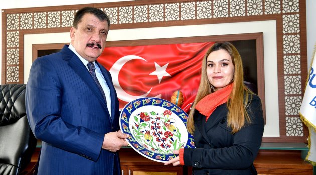 Sanat Merkezindeki kurs öğretmenleri daha sonra kendi yapmış oldukları eserleri Büyükşehir Belediye Başkanı Selahattin Gürkan’a hediye etti.