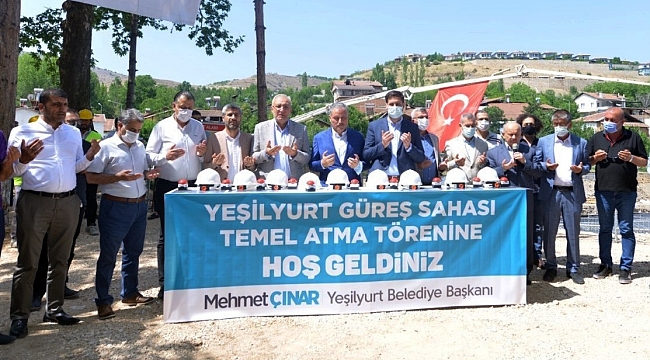 Konuşmaların ardından Malatya İl Müftüsü Veysel Işıldar’ın okuduğu duanın ardından protokol üyeleri ve vatandaşlar tarafından Yeşilyurt Güreş Sahasının temeline ilk harç döküldü.