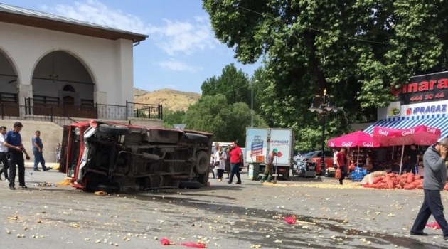 Kaza sonrası araçlarda maddi hasar meydana gelirken kamyonetin içinde bulunan soğan ve patatesler ise çevreye savruldu.