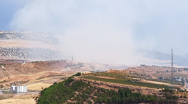 Adıyaman’da yıldırım düşmesi sonucu meydana gelen örtü yangınının ormana sıçramaması için ekipler müdahale ediyor.