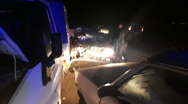 Yol kenarında duran kamyonete otomobil çarptı: 6 yaralı