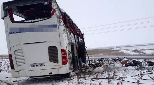 Konya’da kar yağışı ve buzlanma nedeniyle kayganlaşan yolda kontrolden çıkan yolcu otobüsünün refüje devrilmesi sonucu meydana gelen trafik kazasında 1 kişi hayatını kaybetti, 17 kişi yaralandı.