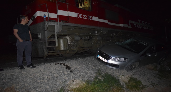 Yolcu treni otomobile çarptı