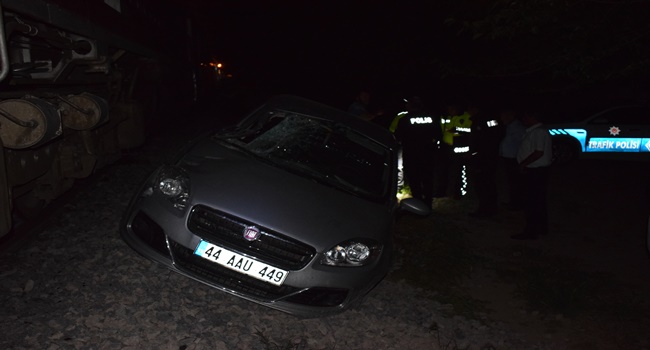 Malatya'da bir yolcu treni hemzemin geçitte askıda kalan otomobile çarptı.