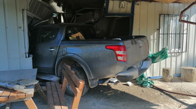Yoldan 100 metre uzaklıktaki eve kamyonetiyle girdi